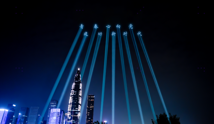 5月4日青年节夜晚,“青春心向党,建功新时代——青春深圳光影SHOW”闪亮登场深圳南山。光峰科技向五四新青年硬核致敬,与这座年轻的“活力之城”共享激光之美。