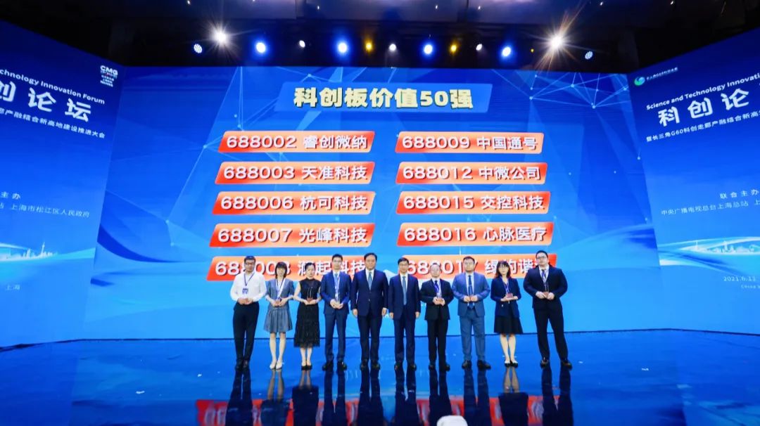 由中央广播电视总台上海总站举办的"科创论坛暨长三角G60科创走廊产融新高地建设推进大会"6月11日在上海举行,会议邀请中国证监会、上海金融局等监管机构领导,著名金融机构代表、科创板企业代表、专家学者等,共同聚焦科创板及科创企业发展趋势,共商如何完善国家创新体系、加快建设科技强国。会议还同步发布了《科创板白皮书 2021》、"科创板价值50 强"榜单。