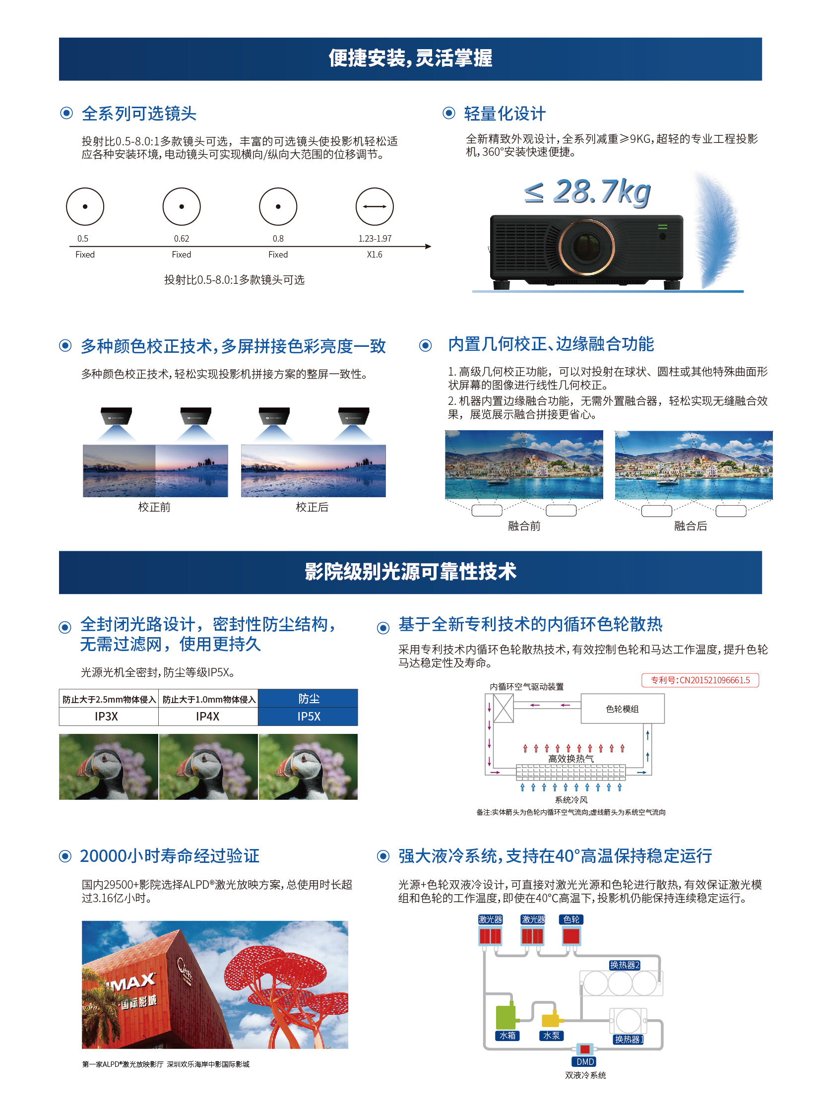 激活色彩S系列工程投影机,RGB三原色技术,色彩亮度100%。