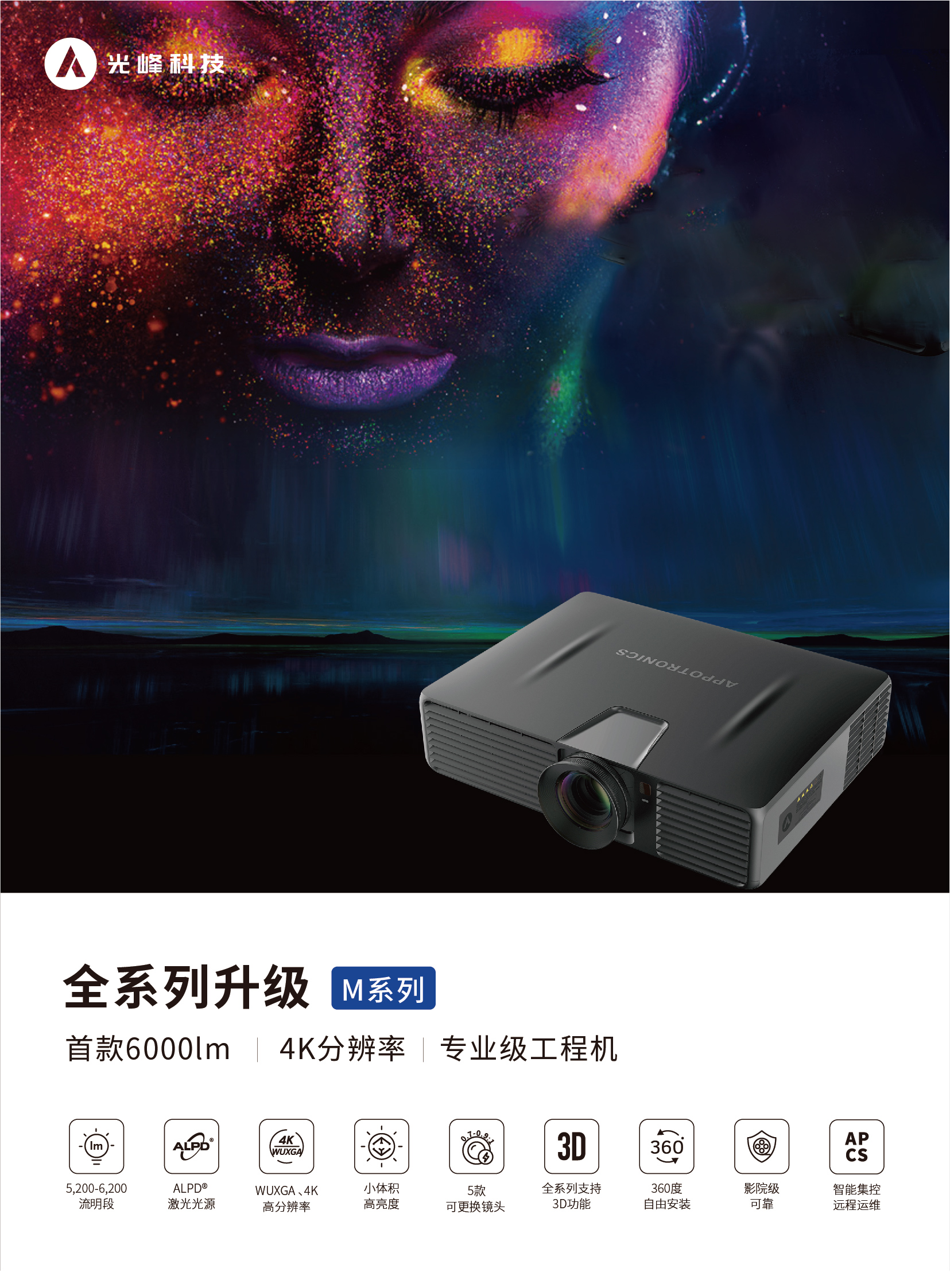 纤薄高亮M系列专业级工程投影机,全系列升级。