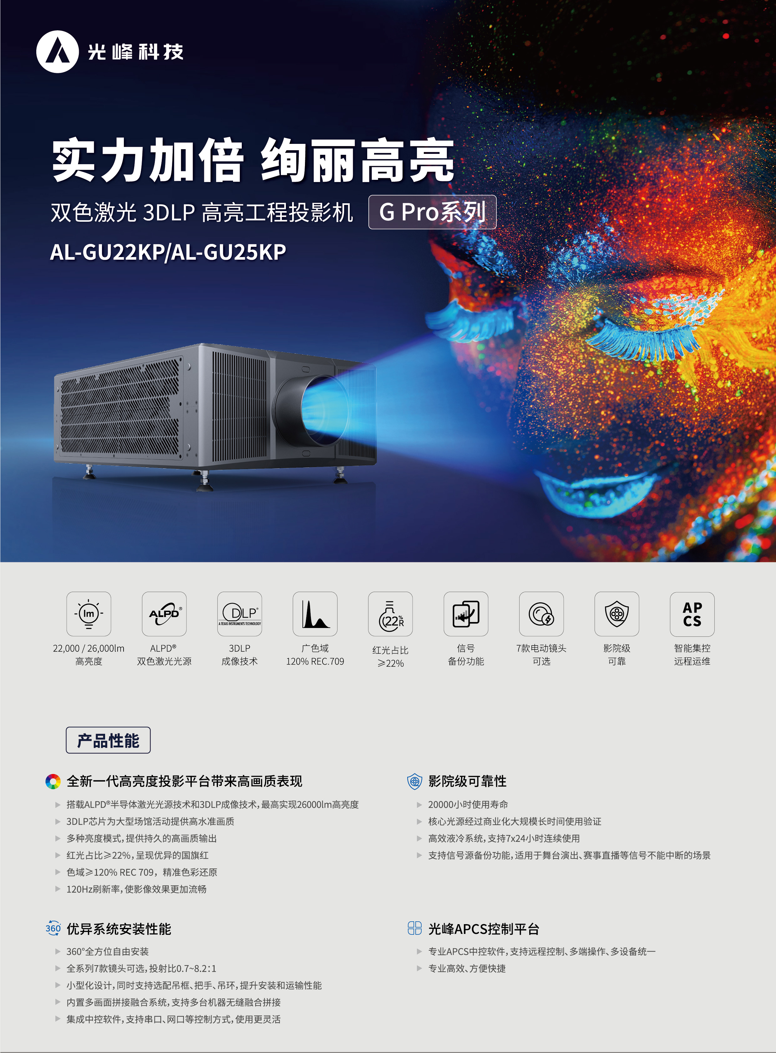 实力加倍 绚丽高亮G Pro系列,双色激光 3DLP 高亮工程投影机。