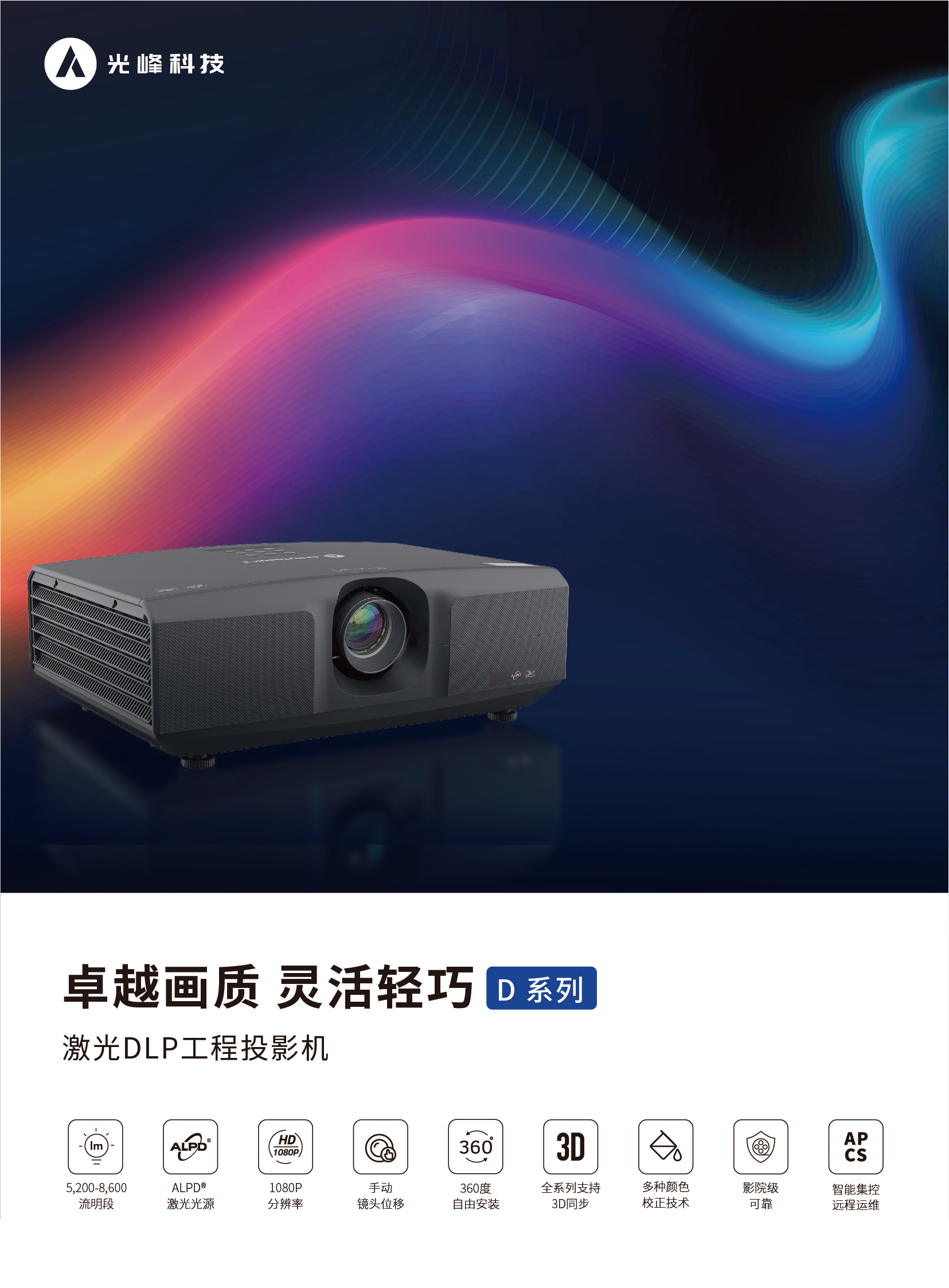 灵活轻巧D系列工程投影机,卓越画质,适用于展览展示、会议控制等场景。