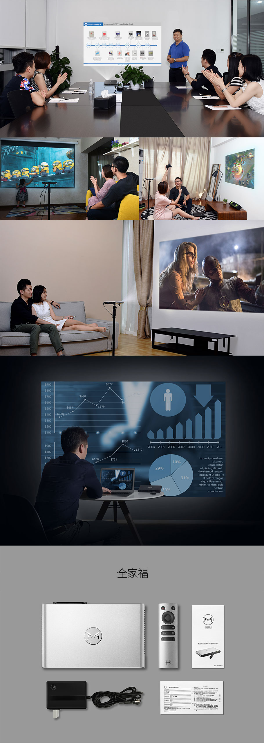ALPD®激光光源,亮度达800流明,不惧灯光、环境光,有效解决开会关灯的尴尬;