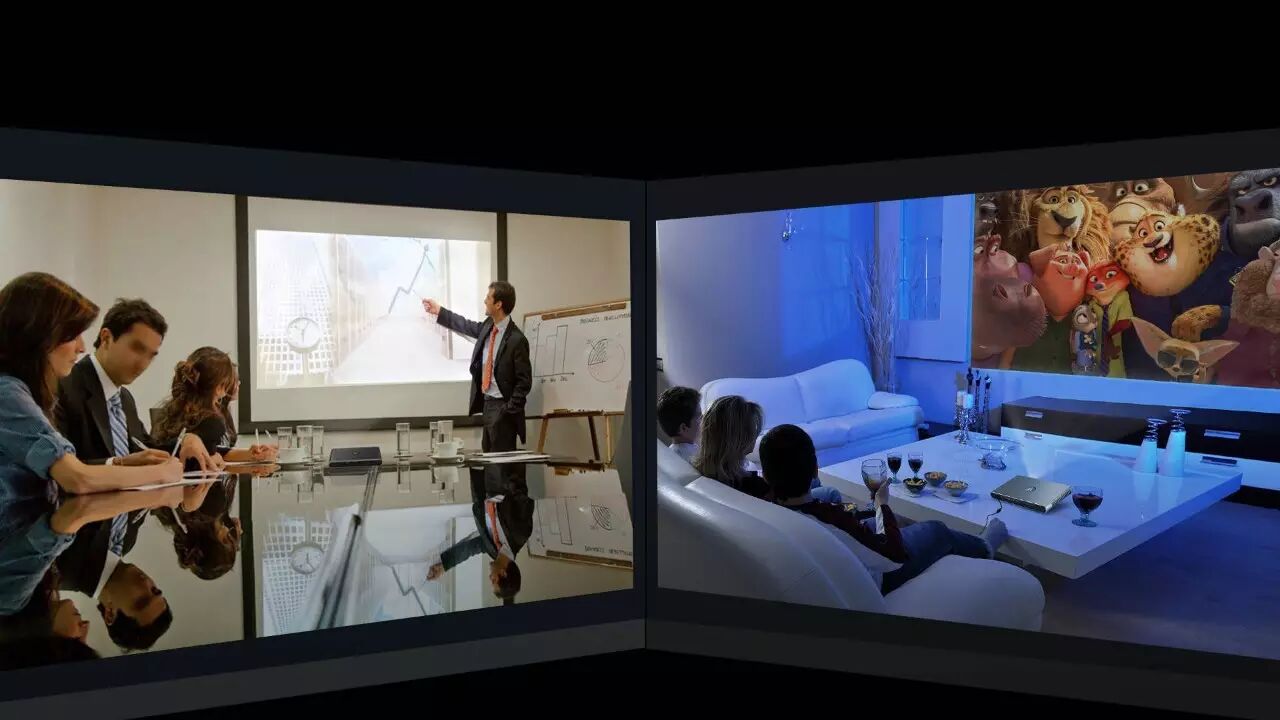 回到家中,最近上映了新的大片,电视不够大?不是问题!激光微型投影仪,最大可以投射300吋,客厅有多大,视界就有多大!